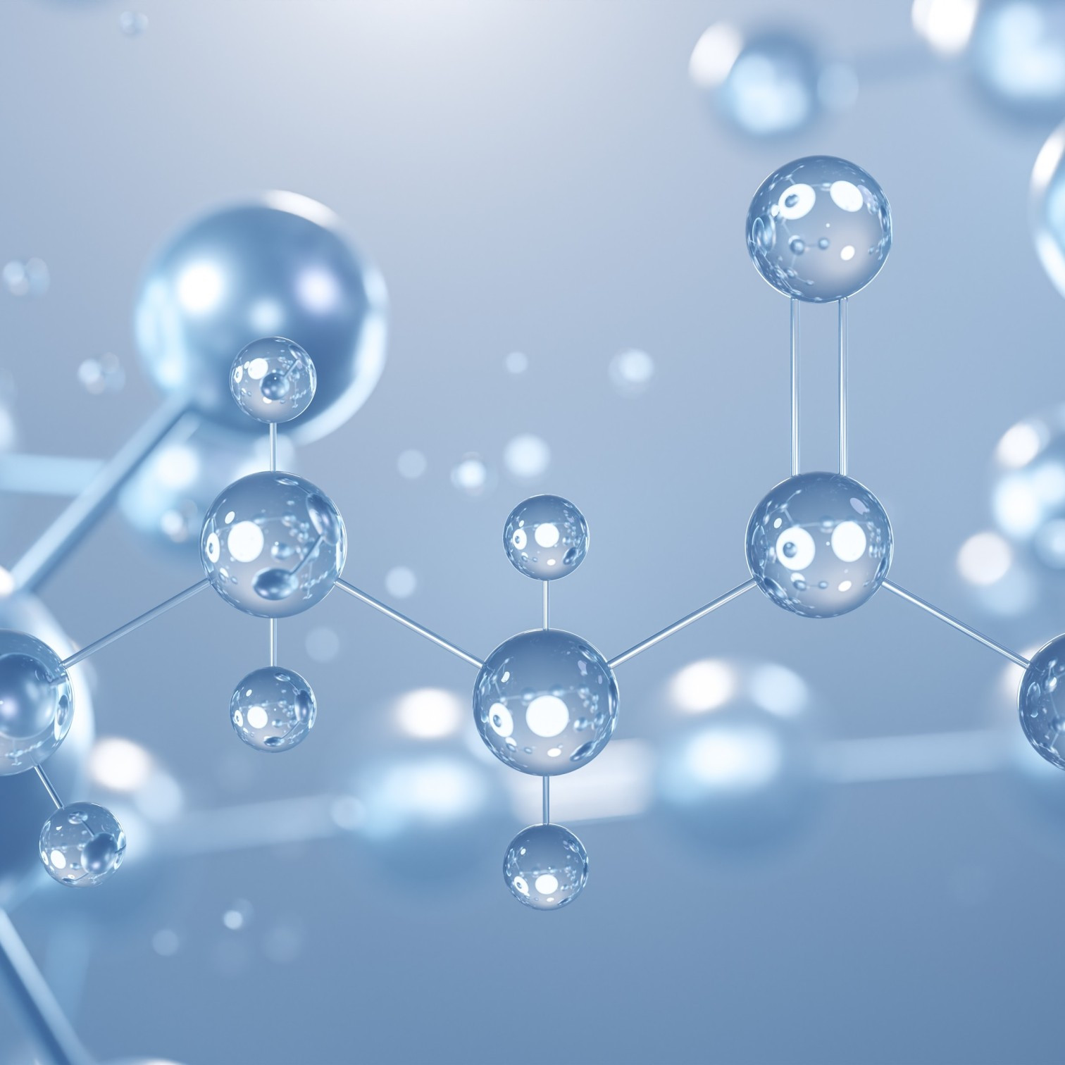 3D-Darstellung von Molekülen und chemischen Verbindungen auf blauem Hintergrund