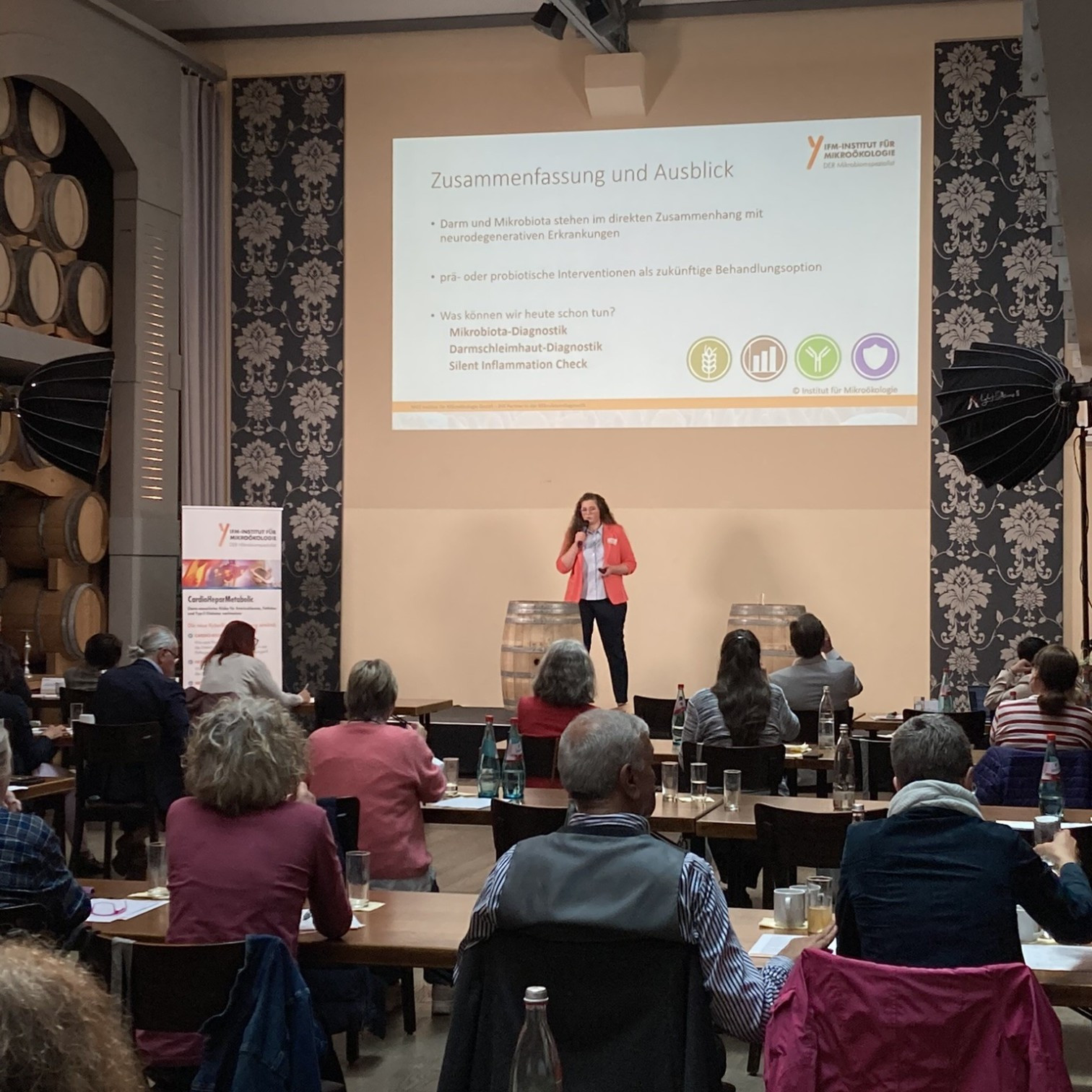 „Die Ursachen für die Alzheimer-Demenz sind trotz intensiver Forschung nach wie vor nicht vollständig aufgeklärt“, betonte Dr. Malena dos Santos Guilherme auf der diesjährigen Fachtagung des Instituts für Mikroökologie in Frankfurt. Dos Santos Guilherme ist seit diesem Jahr am Institut für Mikroökologie tätig. Im Rahmen ihrer Doktorarbeit an der Klinik für Psychiatrie und Psychotherapie der Universitätsmedizin Mainz erforschte sie, welche Rolle die Mikrobiota-Darm-Hirn-Achse bei der Pathogenese der Alzheimer-Demenz spielt. Vorangegangene Studien, an denen auch das Institut für Mikroökologie beteiligt war, hatten bereits die Bedeutung der Mikrobiota-Darm-Hirn-Achse für die Pathogenese von Morbus Parkinson gezeigt.