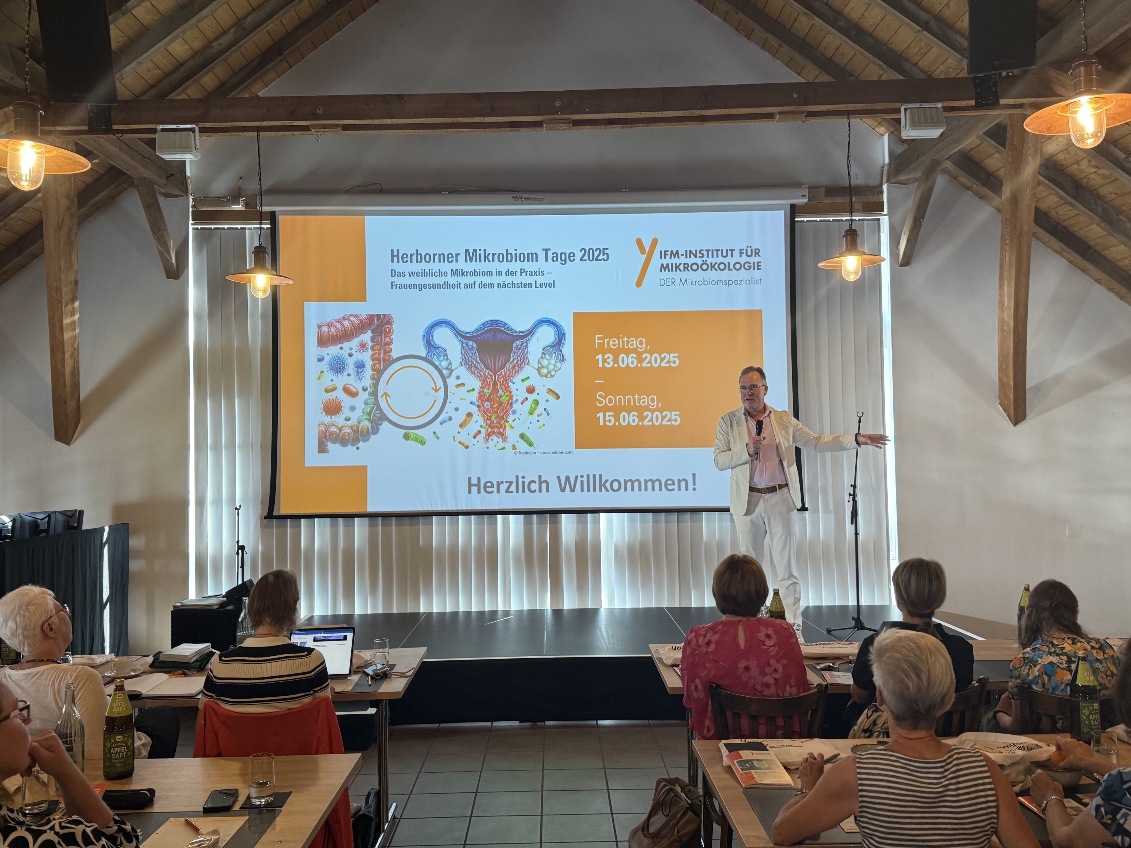 Den Abschluss der Herborner Mikrobiom Tage 2025 machten Dr. med. Thomas Ellwanger, Leiter der medizinischen Wissenschaften am Institut für Mikroökologie. Er zeigte in seinem Vortrag “Abrechnung in der Praxis: Sicher und transparent” anhand von Beispielen die optimale und juristisch belastbare private Abrechnung in Verbindung mit der Diagnostik des Instituts für Mikroökologie auf. Herr Dr. med. Thomas Ellwanger studierte Medizin an der Medizinischen Hochschule in Hannover und ist Arzt am MVZ Institut für Mikroökologie GmbH. Seit 2012 ist er Leiter der medizinischwissenschaftlichen Abteilung des Instituts und ist unter anderem für die Therapieempfehlungen zuständig. Zudem leitet er den medizinischen Hotlineservice und ist auch selbst beratend in der Hotline für Ärzte tätig. Bis Ende 2023 leitete er eine hausärztliche Praxis mit naturheilkundlichem Schwerpunkt und verfügt daher nicht nur über wissenschaftliche, sondern auch langjährige praktische Erfahrung mit der Diagnostik des Instituts sowie deren therapeutischen Konsequenzen. Inzwischen ist er dem Fachpublikum durch mehr als 400 Vorträge bekannt.