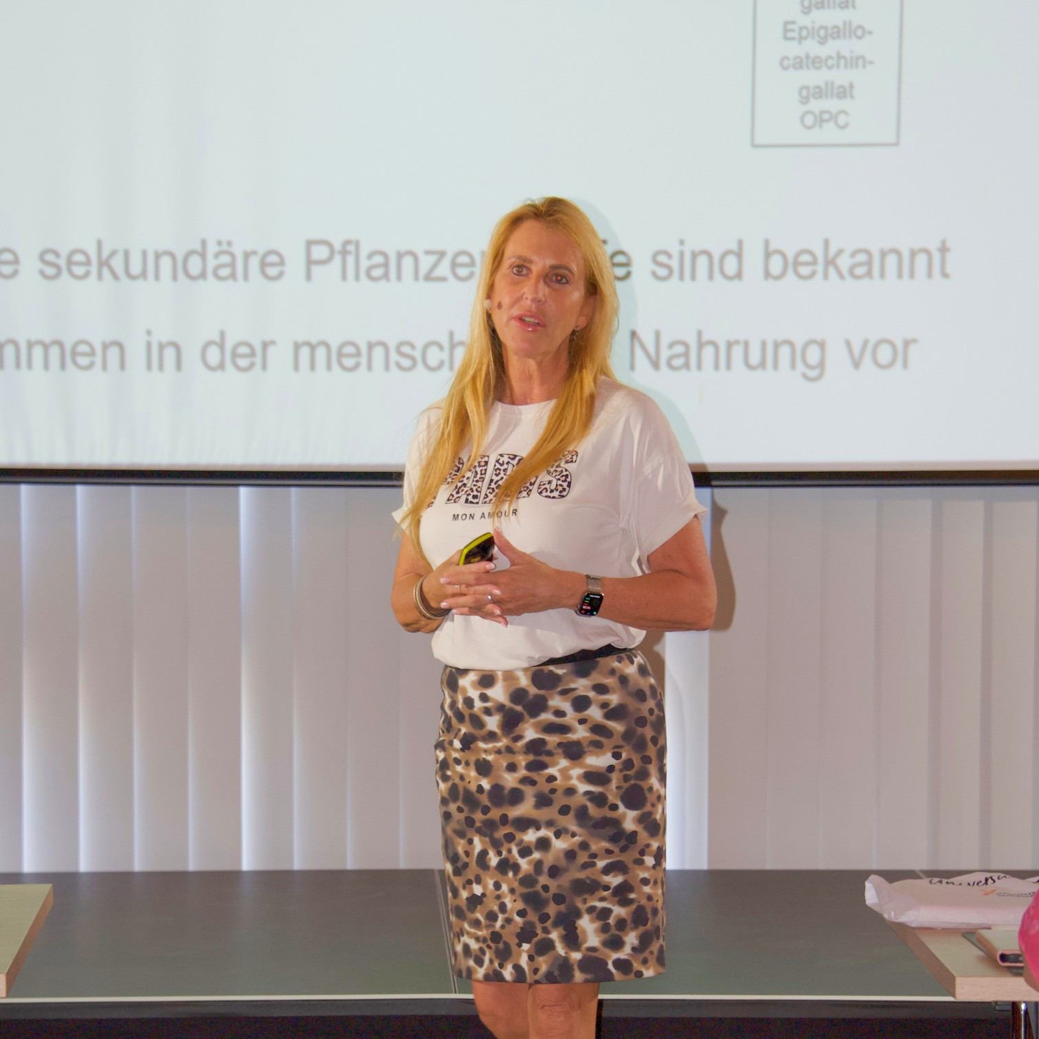 Nach der Mittagspause gab die Apothekerin Sabine Bäumer einen Workshop zum Thema "Praktische Aspekte aus der Apotheke für die Frauengesundheit". Sie ist Fachapothekerin für Allgemeinpharmazie, Homöopathie und Naturheilverfahren Eisbär-Apotheke Karlsruhe. Sabine Bäumer studierte Pharmazie in Heidelberg. Schon während des Studiums entdeckte sie ihre Leidenschaft für evidenzbasierte Phytotherapie – ein Schwerpunkt, der bis heute ihre Arbeit bestimmt. Nach ihren Weiterbildungen und Abschlüssen, die nach dem Studium folgten, unter anderem als Fachapothekerin für Allgemeinpharmazie, Naturheilverfahren, Prävention sowie als Präventionsmanagerin, lebt Sabine Bäumer ihre Leidenschaft für ganzheitliche Medizin in ihrer Eisbär Apotheke. Den Fokus setzt sie dabei unter anderem auf Frauen- und Darmgesundheit sowie integrativem Arbeiten. Als Expertin für evidenzbasierte Phytotherapie entwickelt sie unter anderem individuelle Rezepturkonzepte und Eigenherstellungen und vermittelt ihr Wissen gleichermaßen an Patienten, Therapeuten und Kollegen. Darüber hinaus ist Sabine Bäumer als Autorin und Expertin in Fernsehsendungen präsent, wo sie einem breiten Publikum Impulse für ein ganzheitliches Gesundheitsverständnis gibt.