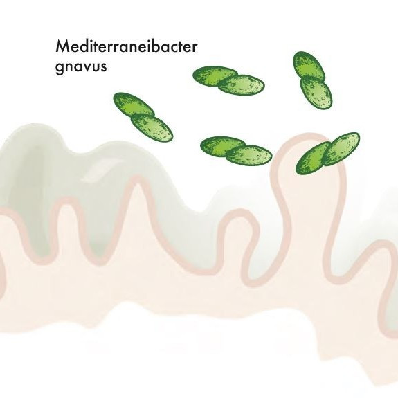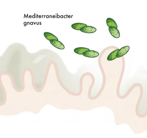 Mediterraneibacter gnavus (M. gnavus) gehört zu den natürlichen Kommensalen unseres Darmmikrobioms. Mehrere Studien zeigen jedoch eine erhöhte relative Häufigkeit von M. gnavus bei entzündlichen Darmerkrankungen, Darmkrebs und beim Reizdarmsyndrom im Vergleich zu gesunden Individuen. M. gnavus verstoffwechselt komplexe Kohlenhydrate. Dabei ist er in der Lage, selbst in Extremsituationen konkurrierende Mikrobiota zu verdrängen (Produktion von Bakteriozinen), auf der Schleimhaut zu wachsen (über die Produktion von Adhesinen) und ausreichend Nahrung in Form von Muzinen (Polysaccharide aus der Darmschleimhaut) zu erhalten. Darüber hinaus produziert M. gnavus entzündungsfördernde Polysaccharide, die über TLR4-Rezeptoren Immunzellen aktivieren und so zu einer vermehrten Ausschüttung von Zytokinen wie TNFalpha führen.