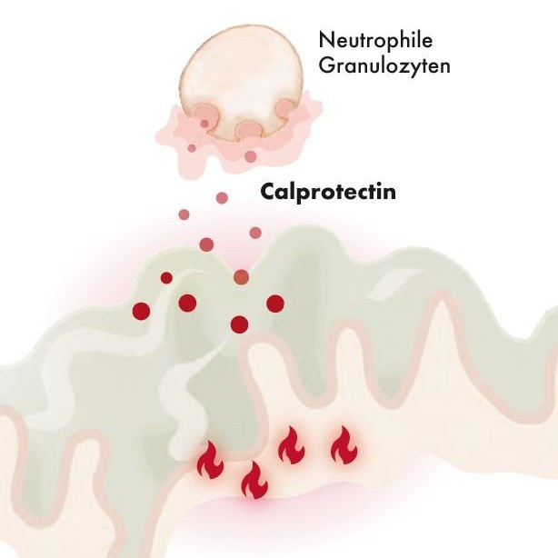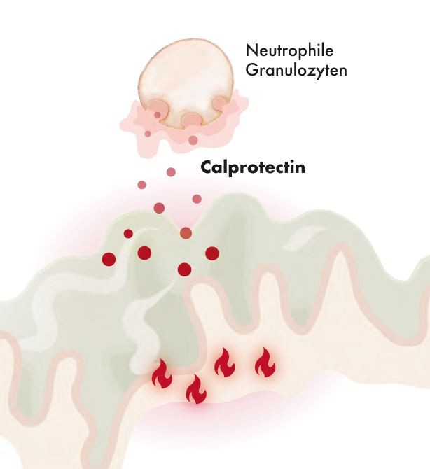 Das Protein Calprotectin macht etwa 60 Prozent des Zellinhalts neutrophiler Granulozyten aus und hemmt das Wachstum von Bakterien und Pilzen. Calprotectin ist ein sehr sensitiver Marker für Entzündungen des Darms. Dabei ist Calprotectin nicht spezifisch für chronisch-entzündliche Darmerkrankungen. Die Calprotectin-Werte sind auch bei nicht CED-bedingten Entzündungen, Kolonkarzinomen, Darmpolypen und weniger stark beim Reizdarm-Syndrom erhöht.