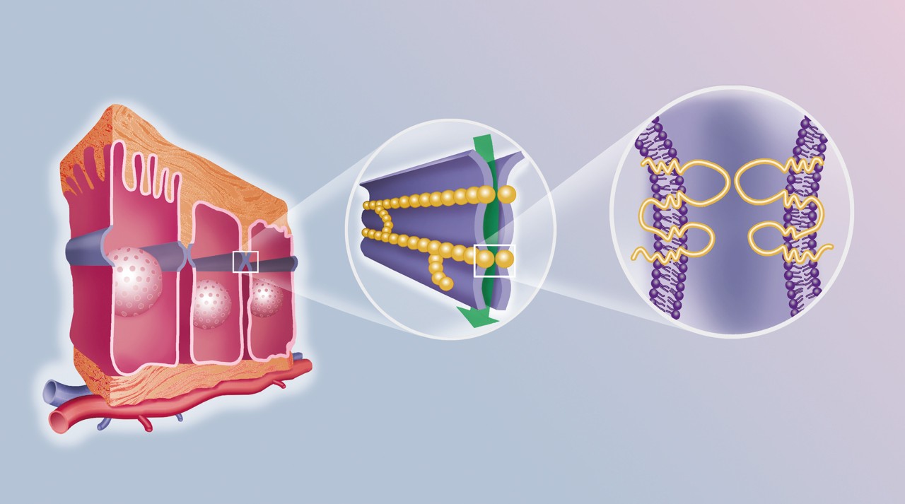 Die Tight Junctions legen sich wie Klettbänder um jede einzelne Epithelzelle und dichten das darunterliegende Gewebe vom Inhalt des Darmlumens ab. Auf bestimmte Reize hin öffnen sich die Tight Junctions selektiv, um zum Beispiel Nährstoffe aufzunehmen oder Immunzellen passieren zu lassen.